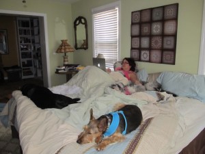 And then ten hours later we arrived safely at our destination: Casa de Canterbury in Columbia, South Carolina. I haven’t seen the green, green grass of home since last summer, if you can believe it. At long last, we are all reunited under one roof. Zippity-do-dah, zippity-ay! Pretty is so happy to see us, too…we love Pretty. She gives us the Best Pets Ever.