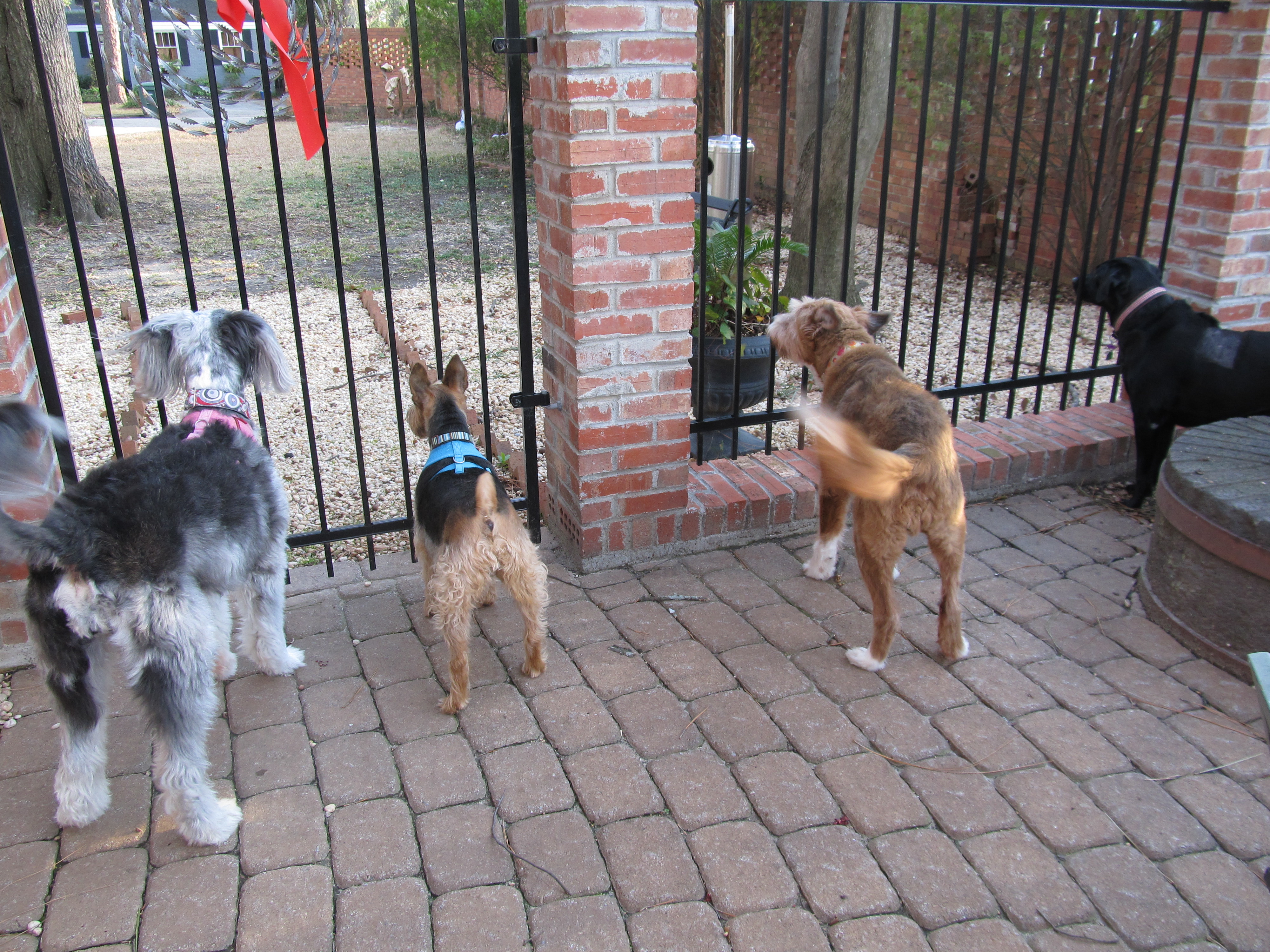 Yep, hail hail the gang’s all here. Smokey Lonesome Ollie, Moi , Paw Licker Annie and Tennis Ball Obsessed Chelsea who is recovering from an unprovoked attack on her back. She tangled with the wrong Big Dawg evidently a couple of weeks ago, but she must be fine. She still goes around slobbering with those yellow tennis balls in her mouth hoping Somebody will throw one for her. It must be hard to be that dumb. I wouldn’t know.
