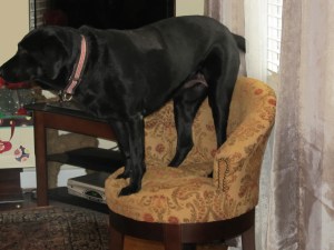 In the interest of unselfishness and in response to the many requests I’ve had from my followers, The Red Man has decided to feature a Member of our Pack who apparently gets overlooked in our pictures and stories. Well, actually the only one who’s mentioned it is Pretty, but then, when Pretty wants something, we try to oblige to keep the Pretty Pets coming. So tonight we’re sending a big Shout Out to Tennis Ball Obsessed Chelsea, the Black Lab who came to us by way of Pretty’s son who was young and unreliable and unable to take care of his puppy purchase at the time we adopted Chelsea. Sad but true. Another case of a grandmother rescuing the perishing.