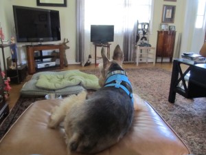 Pretty had a day off this weekend so we were all having a Day of Leisure at Casa de Canterbury on Saturday afternoon when the Wrath of God was visited upon us – or something like that anyway. Pretty was reading a book preparing to take a nap in our king-sized bed and the old woman Slow was in her office doing who knows what. Paw Licker Annie was resting on one of her countless beds on the floor in the bedroom and Smokey Lonesome Ollie was asleep on the bed next to Pretty. Tennis Ball Obsessed Chelsea was downstairs on the sofa which is where she likes to be on a relaxing afternoon. Spike was in the office with Slow and Yours Truly was stretched out on a rug outside the bedroom beneath the soothing breeze of the ceiling fan which was blowing perfect puffs of air for the Walter Mitty moments I was having. The time was approximately 1:00 p.m.