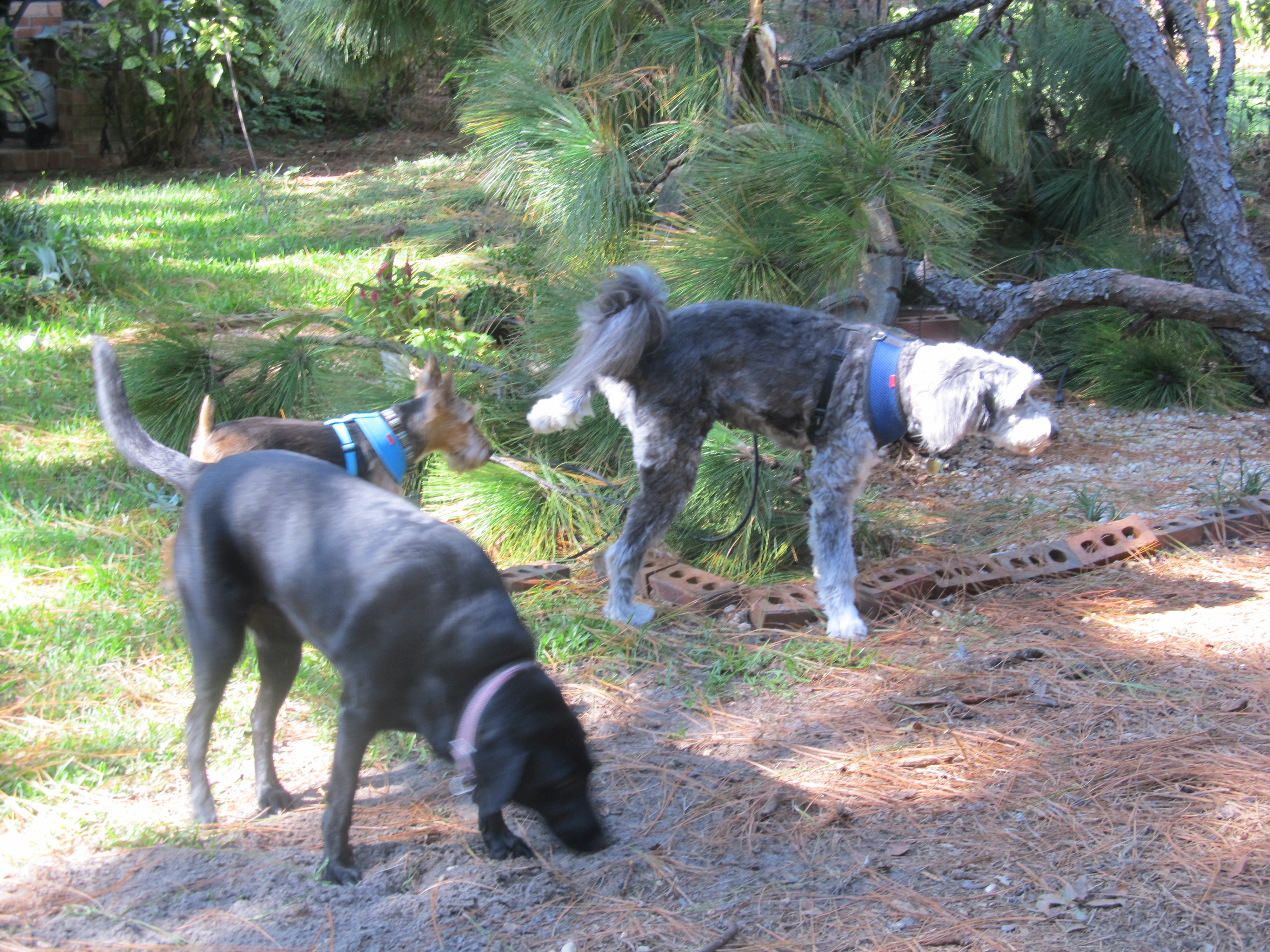 BOOM!! And just like that the serenity of our lives was interrupted by a loud noise and then total silence and darkness. The first thing I noticed was the ceiling fan moving slower and slower and slower until it finally stopped. Shit house mouse. Of course Slow sprang into action and went running down the steps to head for the breaker box and I could hear her flipping those switches on and off a hundred times. Nothing. She and Pretty were hollering back and forth at each other about the situation and then I saw Slow go out on the front porch and look down the street to check out the neighbors’ houses. That’s what she invariably does in an emergency. I guess she wants to see if there’s been like a Rapture or Some Other Big Event and we’re the only ones left. As she came back inside to report Canterbury Road appeared unscathed, Pretty herself came downstairs to assess our plight and The Pack all came downstairs with her. When Pretty decides we have an emergency, we know it’s Trouble Time. Had anyone bothered to look in the Back yard, Pretty wanted to know.