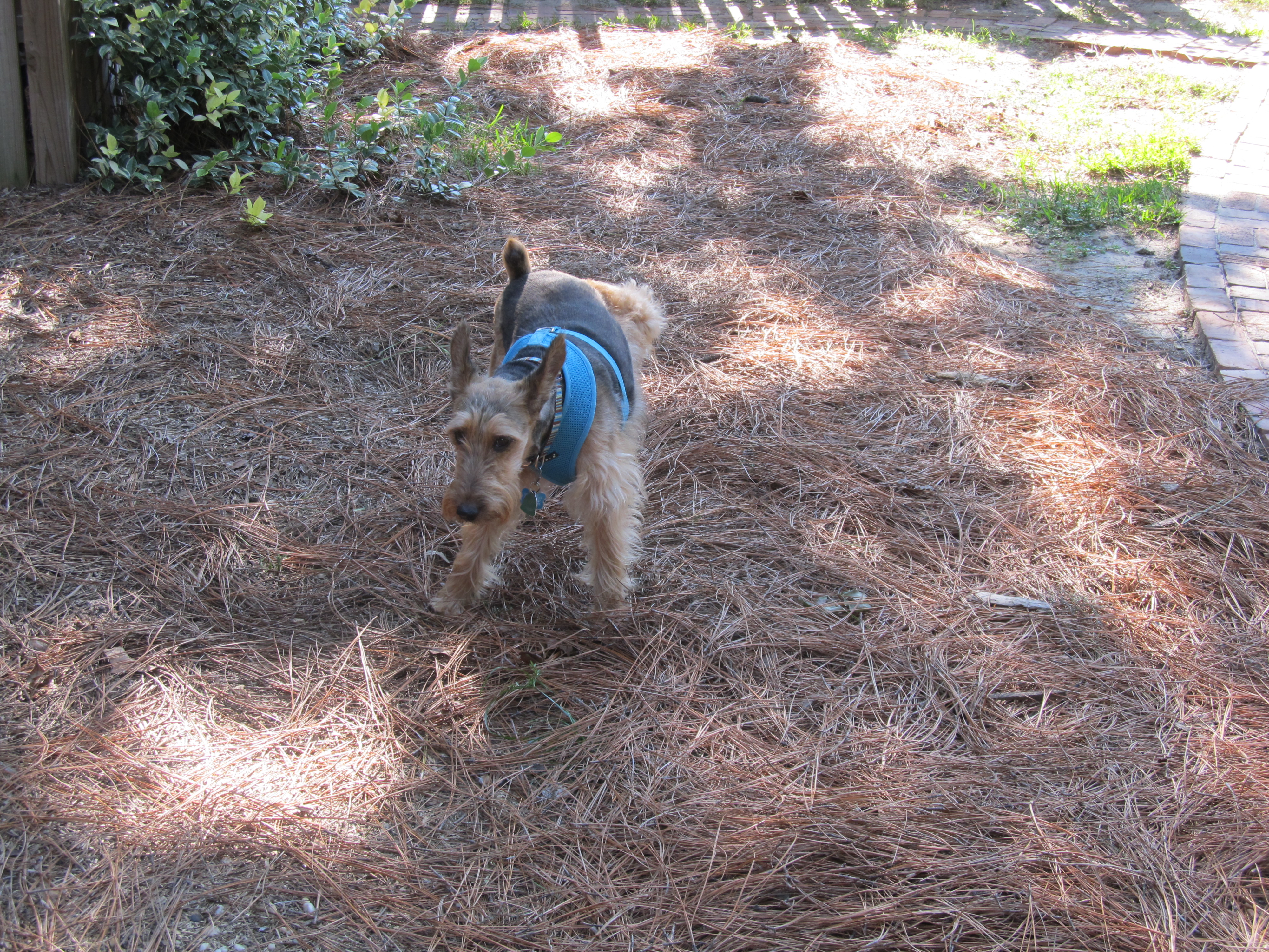 Everything went as well as could be expected on our outing and I have to say I was relieved to be out of the house for a different scene.    But when we made the turn for our home stretch on Canterbury Road,  a small ball of fur came flying out of nowhere and started barking and running around and creating Major Drama and general chaos among the three of us and the next thing I knew I had shaken off my blue halter and was outta there Baby…The Red Man was G-O-N-E!  That little ball of fur took off ahead of me and I was hot on his heels!   Let Freedom Ring!