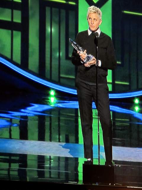 So practice makes perfect as the saying goes and Ellen knows how to give an acceptance speech and did a good job while the old woman Slow beamed and glowed.  I swear she thinks whenever a Famous Lesbian gets an Award she and Pretty are winners, too.   Whatever.  The next thing you know they’ll be wantin’ to get MARRIED because Ellen and Portia are married.  Spare me from a WEDDING at their age.  Plus they’d have to go to some state like Iowa since they for sure won’t be gettin’ legal in Texas or South Carolina any time soon and I’m not interested in a road trip to Iowa, if you catch my drift.