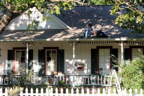 The Tasmanian Devil worker bee across the street from us was on the roof cleaning out her gutters…in this HEAT. Slow started talking to her to try to get her down from the gutter project, but no way Jose. She was up there and by God, she was going to stay up there as long as she needed to. Well, The Red Man admires her spunk and gives her Paw Snaps and Twirls for the work she’s done on her vacation weekend. Her house is easy on the eyes, and we love to look at it.