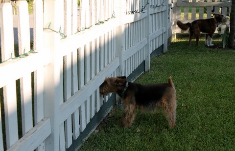 It’s a wonder I didn’t have a heat stroke running up and down the fence barking as loud as I could until Bickford leisurely strolled back to his yard. And instead of THANKING somebody for a job well done, I have to put up with Slow chasing around behind me trying to get me to go inside and be quiet. She can bite me.