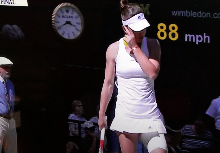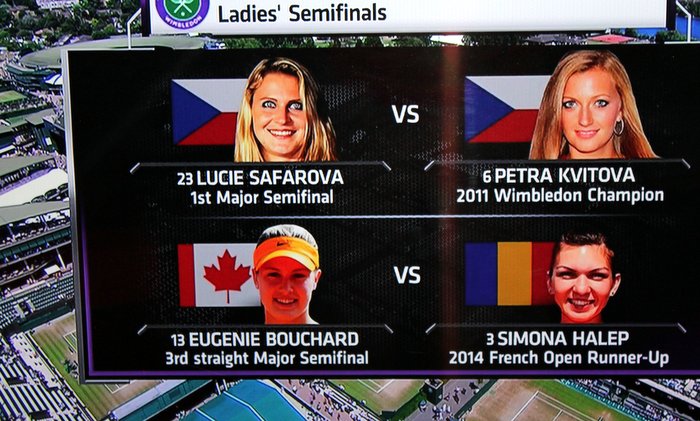 At any rate, today was The Ladies Semifinals and with Serena and Sharapova out of the running, some unfamiliar faces played on Centre Court.  We all were glued to the action.