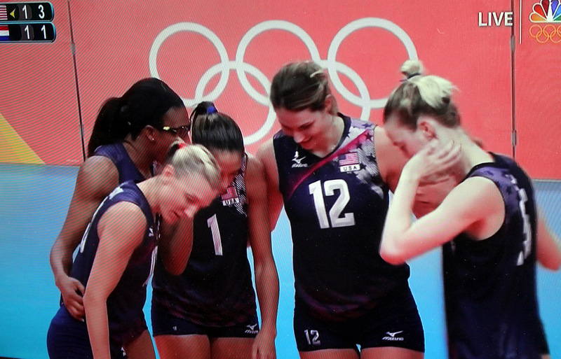 Speaking of undone, the USA Volleyball Team almost came apart during their game with The Netherlands today – but rallied to win in the fifth game. Whew – that was a squeaker – The Netherlands played great and came THIS CLOSE to winning. The Red Man sends Paw Snaps and Twirls to both teams for great play.